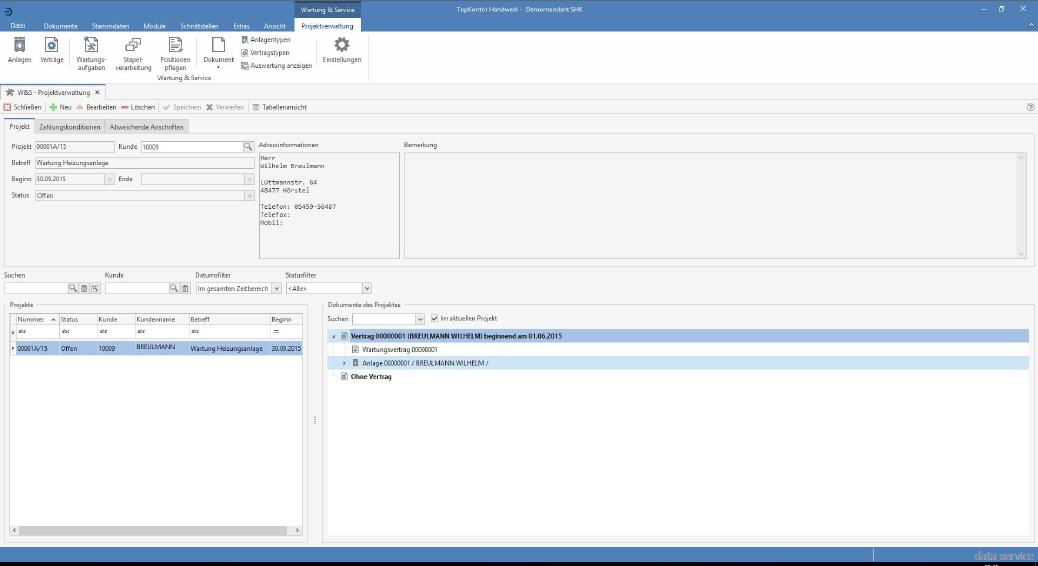 Das Modul Wartungs- und Serviceabwicklung in unserem Handwerksprogramm, ermöglicht das Automatisieren wiederkehrender Aufgaben. Typischerweise findet man dieses im Handwerksbetrieb aus dem Sanitär, Heizungs- und Klimabereich.
